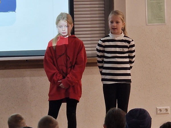 Lotta und Marie von der SV stellten die Aktion "Meins wird deins" von der "aktion hoffnung" vor, die jedes Jahr in unserer Schule durchgeführt wird. In den nächsten Tagen bringen die Kinder jeweils ein Kleidungsstück für diese Aktion mit. Nähere Informationen finden Sie auf der Seite der Aktion (www.aktion-hoffnung.de)
