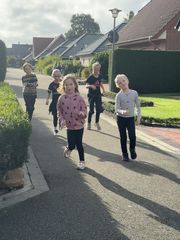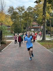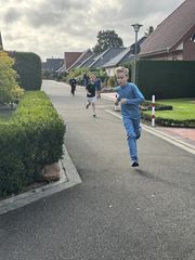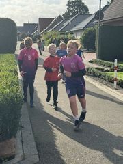 Zunächst wurde sich gemeinsam auf dem Schulhof zur Musik aufgewärmt. Um 10 Uhr ertönte dann der Startschuss und die Schüler/innen liefen dann motiviert in Etappen los.