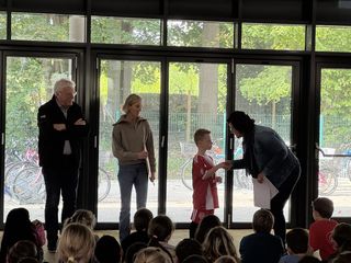 Nachdem alle Schüler und Schülerinnen erfolgreich die 60 Minuten durchgehalten und unzählige Runden auf ihren Zetteln vermerken konnten, fand im Anschluss in der Mensa die Rezertifizierung zur "Sportfreundlichen Schule" statt. Dort wurde unsere Schule für weitere fünf Jahre zur Sportfreundlichen Schule ernannt.