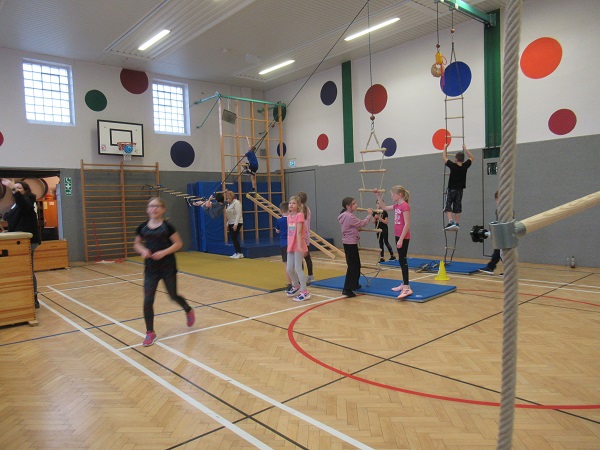 Sehen Sie hier ein paar Eindrücke dieses Vormittags, an dem jede Klasse für 35 Minuten in die Turnhalle durfte, um sich beim Klettern auszuprobieren.