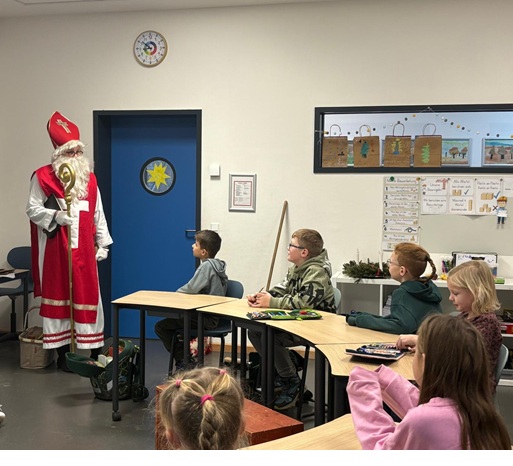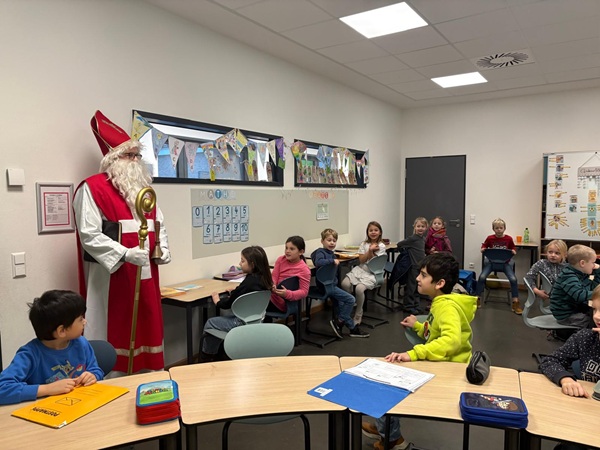 Am Nikolaustag besuchte der heilige Mann auch die Kinder der Splittingschule und hatte für jede Klasse einen großen Sack mit Geschenken dabei: